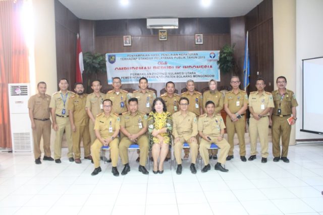 Wakil Bupati Yanny Ronny Tuuk dalam sambutannya mengatakan terima kasih kepada kepala Ombudsman Perwakilan Provinsi Sulawesi Utara yg telah menyerahkan dan memberikan penilaian kepatuhan terhadap Standar Pelayanan Publik Tahun 2019 kepada Kabupaten Bolaang Mongondow sebagaimana yang diamanatkan oleh Undang-undang Nomor 25 Tahun 2009 tentang Pelayanan Publik.