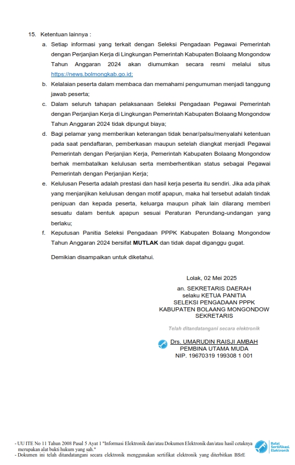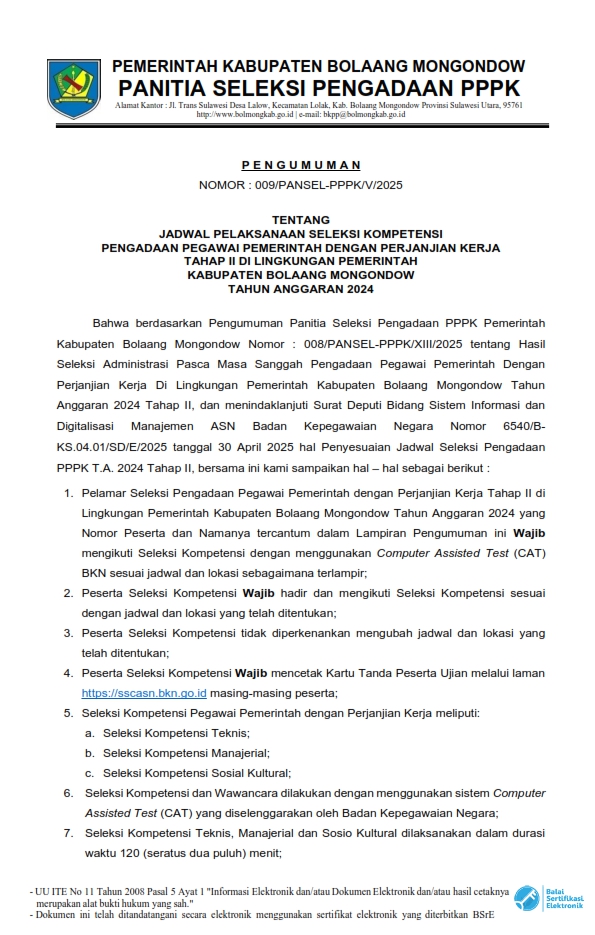 PENGUMUMAN JADWAL SELEKSI KOMPETENSI PPPK KABUPATEN BOLAANG MONGONDOW + LAMPIRAN_sign