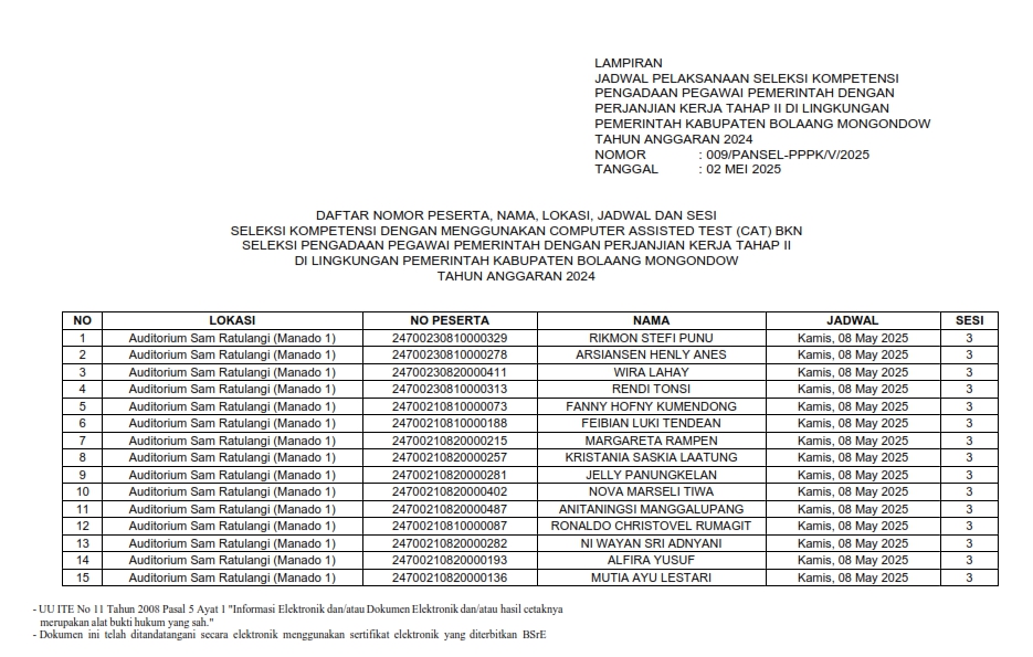 NOMOR : 009/PANSEL-PPPK/V/2025